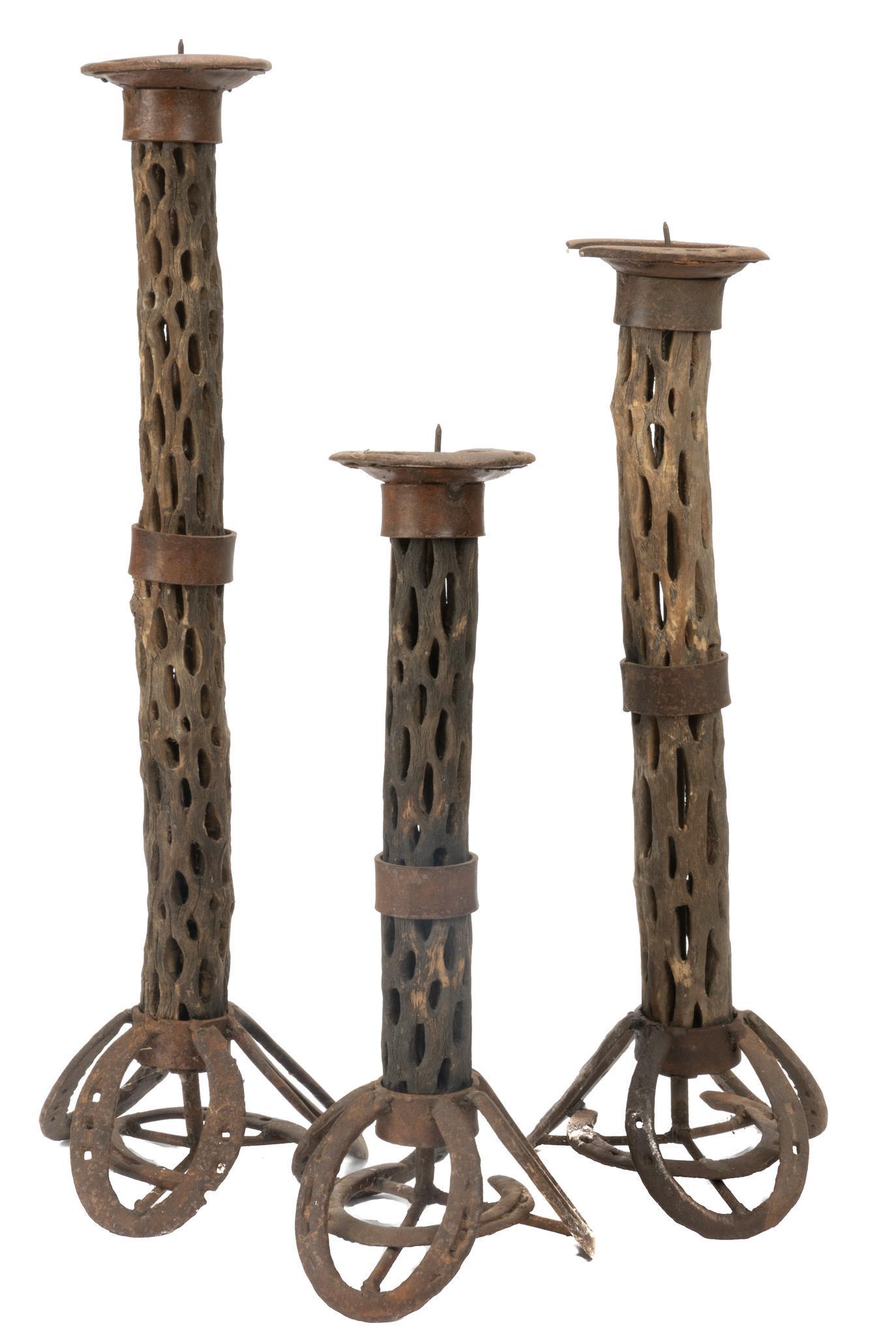 Set of (3) Rustic Candlesticks