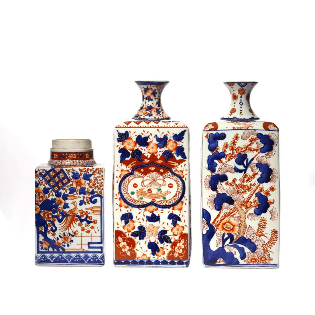 A SET OF THREE 18TH CENTURY JAPANESE EDO PERIOD IMARI VASES AND COVERS painted with birds and flowerHannam's Auctioneers Ltd4.3(416)£606 days Left