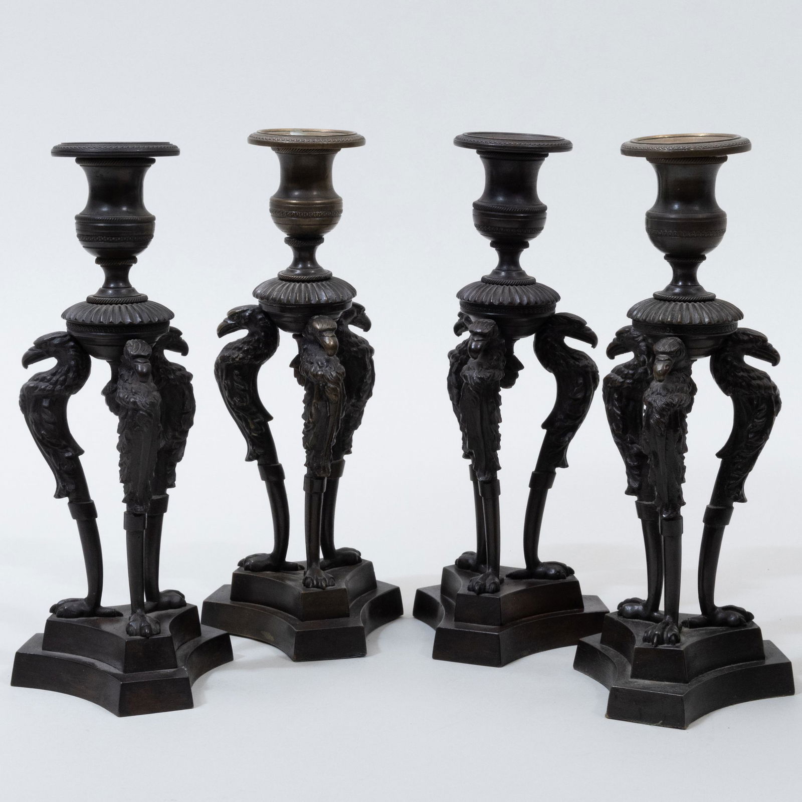 Set of Four Regency Bronze Candlesticks