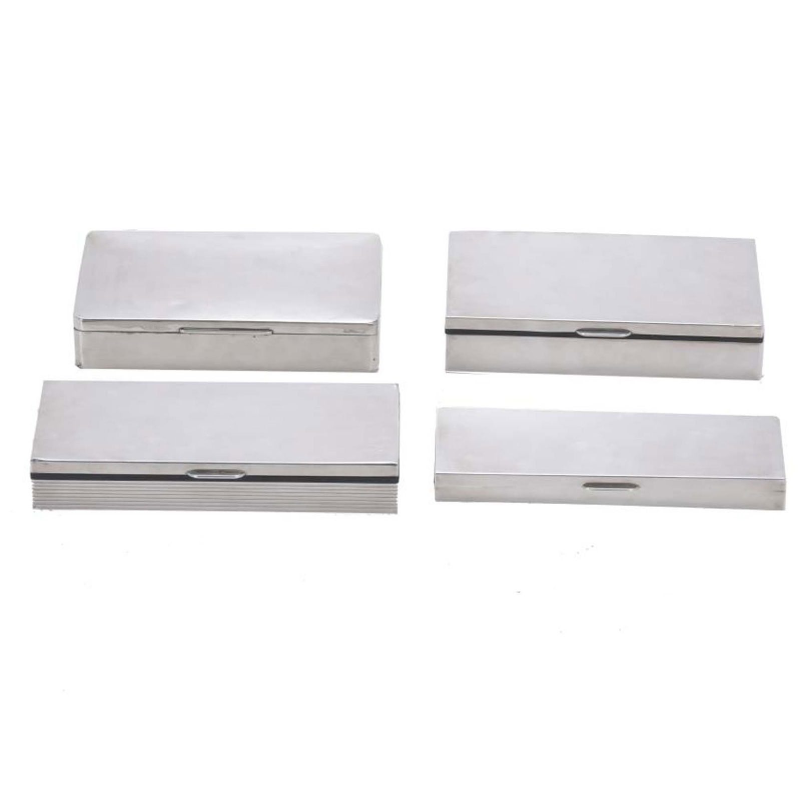 SET OF FOUR SILVER SNUFF BOXES.