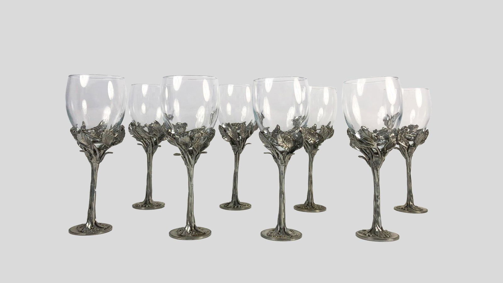 Set Of Pewter-Stemmed Goblets