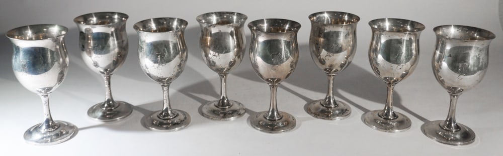 (12) SILVERPLATE ITEMS, MAR-A-LAGO & MOREMar 21, 20261970s Set if 12 Silver Plate Wine GobletsEight Sterling GobletsMar 26, 2026(12) Goblets, Solid Sterling Silver, M. Fred Hirsch Co. Silver Mark, Circa 1920 - 1945Apr 18, 2026Set of 8 Revere Silversmiths Sterling Silver Goblets Classic Design4 days Left6 Fisher Sterling Silver Goblets, 5 Sterling Silver Cordials & 2 Odd Sterling Pieces, 34 ozt.8 hrs LeftSTERLING SILVER GOBLETSMar 20, 2026Eight Mexican Sterling Silver Goblets,4 days Left(12) STERLING SILVER WINE GLASSES INTERNATIONAL6 days LeftSet of Six Sterling GobletsMar 26, 2026Six Gorham Sterling Silver Goblets1 day LeftSTERLING SILVER GOBLETSMar 20, 20266pc Electro Plated Nickel Silver Floral Engraved Cordial Goblets5 days LeftPair of Mexican Sterling Silver Goblets,4 days LeftSTERLING SILVER decanter with (6) small goblets, nice overall condition, goblets and decanter haveApr 10, 2026Forty-piece Webb Glass Stemware, England, 20th century,