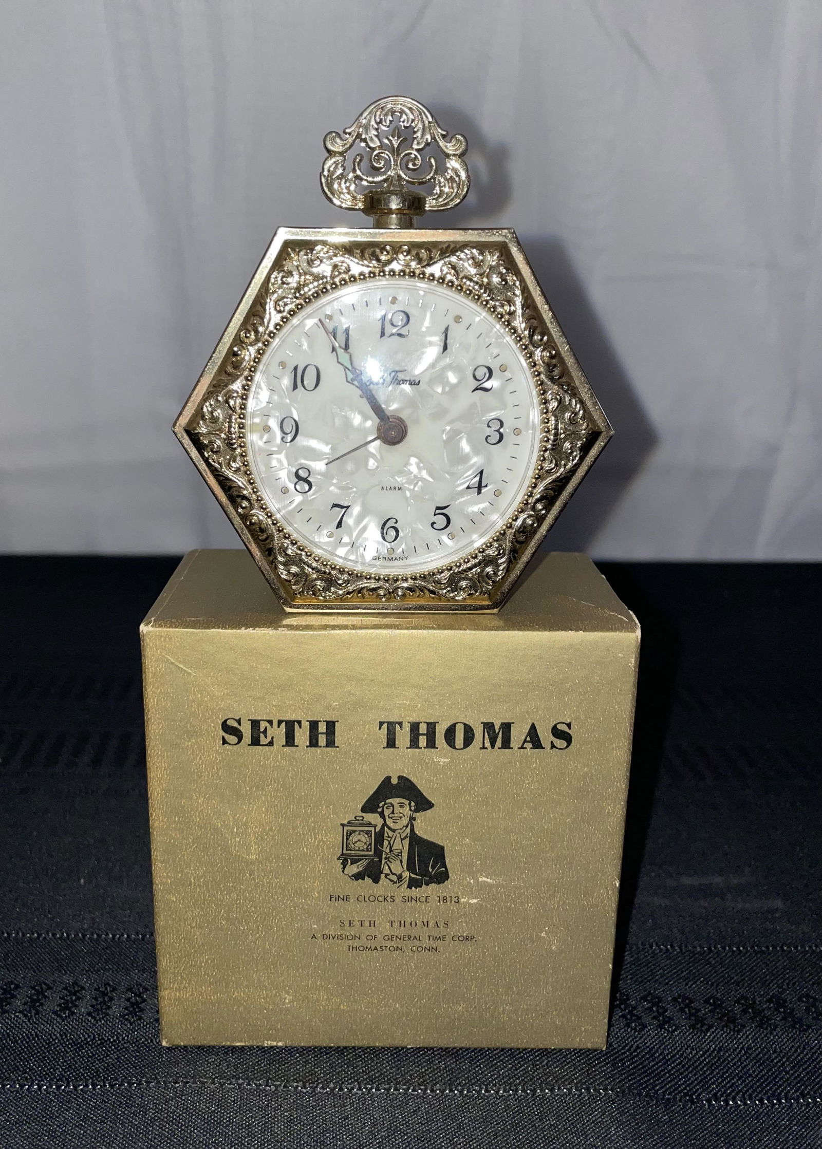 Antique German Domed Anniversary Clock c.1900Vintage Smiths One Day English Table ClockNice Vintage Seth Thomas Mantel ClockMar 14, 2026Seth Thomas brass ship's wheel clock with a 24-hour dialMar 02, 2026SETH THOMAS "BELL OVER" OR "OUTSIDE TOP BELL" TWO-DAY SHIP'S CLOCK America, Circa 1900 Dial diameter4 days LeftAntique Seth Thomas keywind table clockMar 02, 2026A Travel ClockMar 03, 2026Vintage Maitland Smith Mantel ClockMar 10, 2026Carl Faberge Carriage Clock with CalendarMar 05, 2026A Travel ClockMar 03, 2026VINTAGE SETH THOMAS MANTEL CLOCK WOOD AND GOLD7 days LeftA Travel ClockMar 03, 2026Seth Thomas Homestead Banjo Clock6 days LeftGerman Made Shelf ClockMar 06, 2026A Travel ClockMar 03, 2026Vintage table clock6 days Left