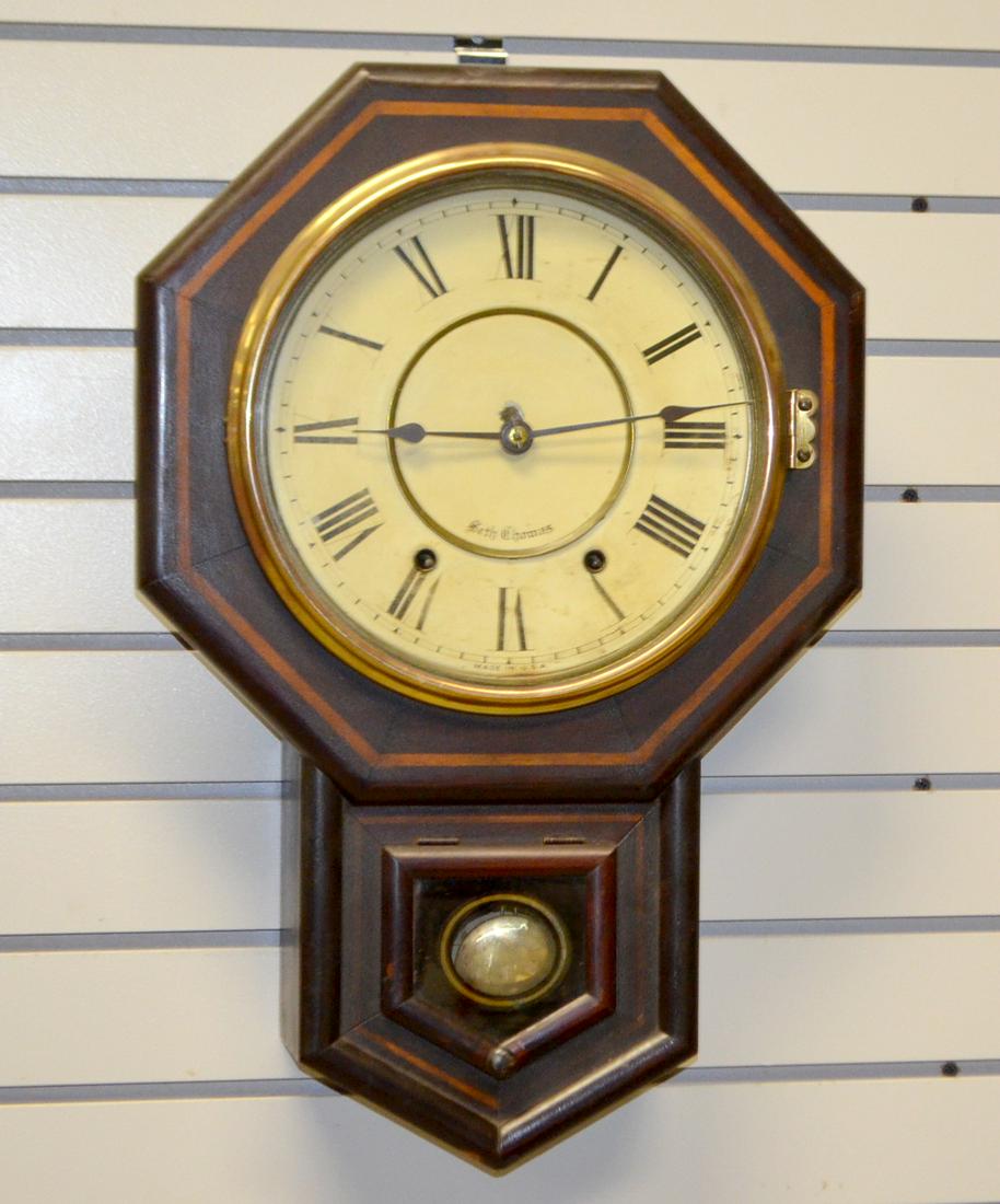 Seth Thomas Short Drop Octogon Clock. T&S, signed 10"