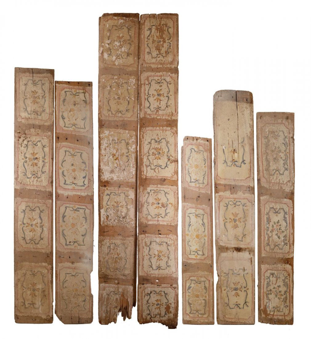 SETTE TAVOLE da controsoffitto in legno dipinto (da