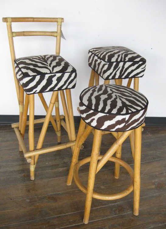 SEVEN ASSORTED BAMBOO AND RATTAN BAR STOOLS