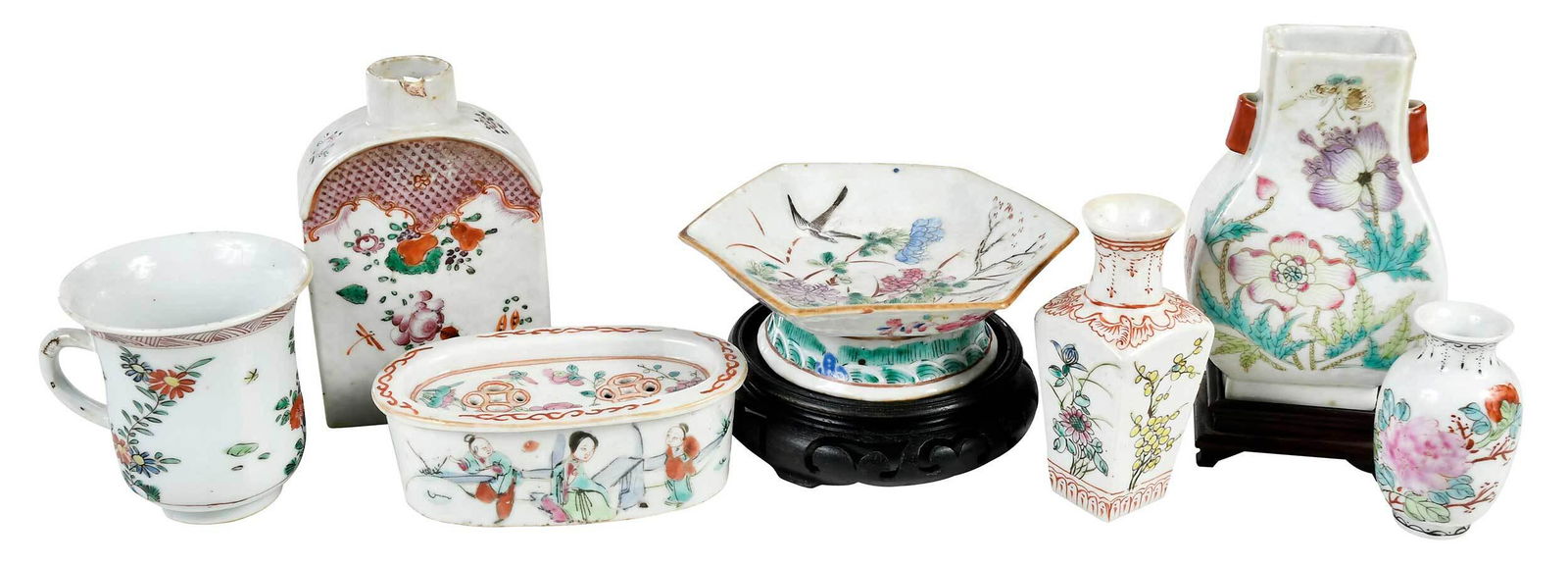Seven Assorted Chinese Famille Rose Porcelain Objects