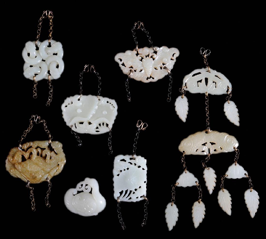 Seven Carved Jade Pendants with Chains
