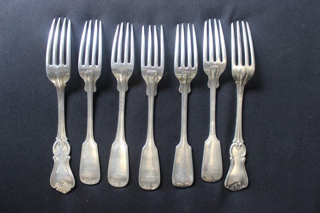 SEVEN CIRCA 1840'S SILVER DINNER FORKS