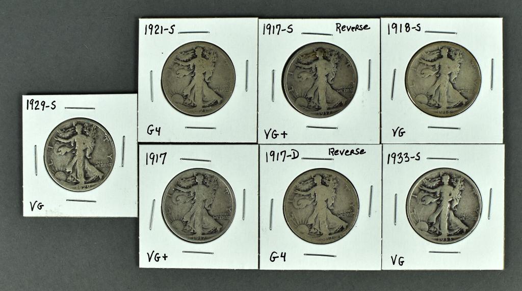 Seven Early Date Walking Liberty Halves