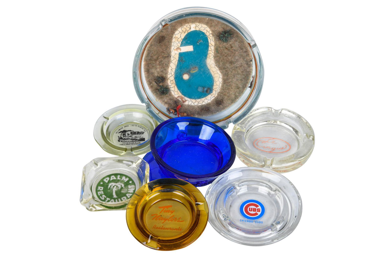 SEVEN GLASS ASHTRAYS