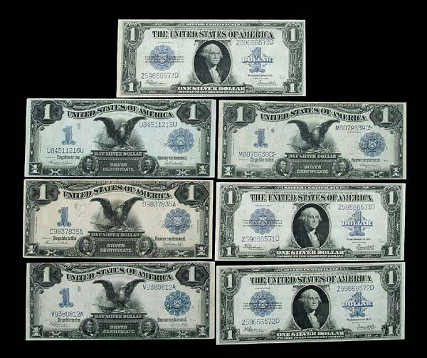 Seven large U.S. silver certificates,