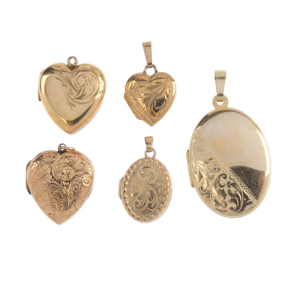 Seven lockets and a pendant, with chain. To include