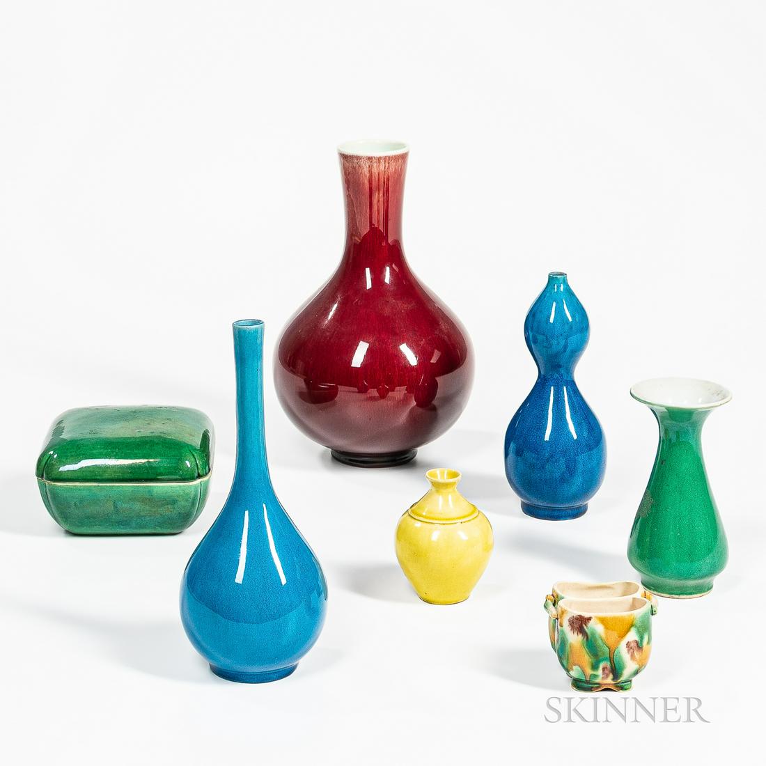 Seven Mostly Monochrome Glazed Porcelain Items