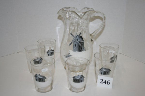 Seven pc. Mary Gregory water set
