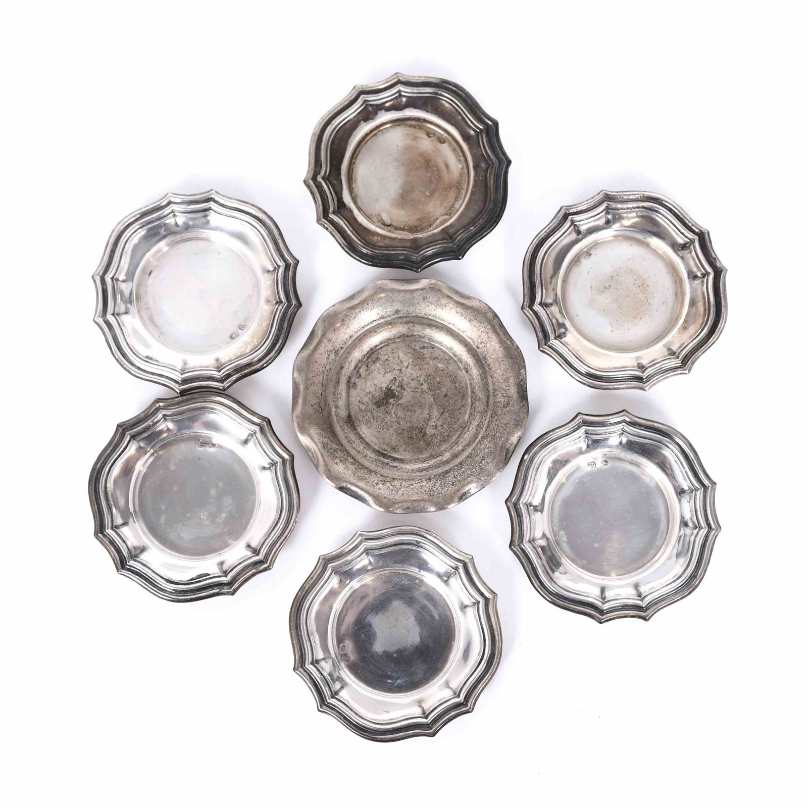 SEVEN SILVER ASHTRAYS, MID 20TH CENTURY.