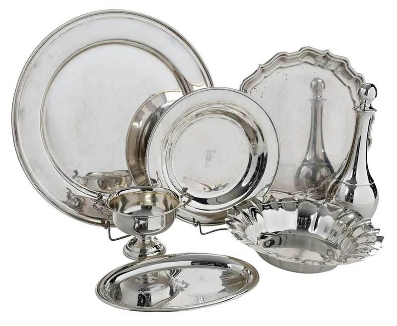 Large estate lot of silverplate to include (4) trays, 2 pc. Tea set, flatware, pitcher, (3) coveredApr 10, 2026LOT FINE SILVERPLATED ITEMS5 days LeftLOT STERLING SILVER TABLE ITEMS5 days LeftCHRISTOFLE GALLIA SILVER PLATE MIXED LOT VINTAGE HOLLOWWARE4 days LeftA mixed group of 20th century German 925 and 835 standard silverTHREE-PIECES OF AMERICAN STERLING HOLLOWWAREMar 25, 20266 pcs. of Sterling Silver Holloware3 days LeftA Group of American Silver Table Articles8 hrs LeftA mixed group of sterling silverFOUR LARGE STERLING SILVER SERVING DISHES BY KIRK. Hand embossed repousee.Apr 21, 202611PCS OF AMERICAN & EUROPEAN SILVER HOLLOWWAREMar 25, 2026Group of Sterling Silver TablewareMar 25, 2026Howard & Co. Silver Waiter, Silver Plate Salver and a Silver Plate DishMar 25, 2026GROUP OF ASSORTED STERLING SILVER. Largest, 12"d.2 days Left5 pcs. Mid 20th c. Sterling Silver Hollowware3 days Left(7) American Sterling Silver Footed Bowl, Trays, & Vide-Poches2 days Left