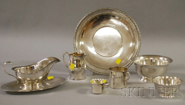 Seven Sterling Table Items, a Gorham sterling gravy
