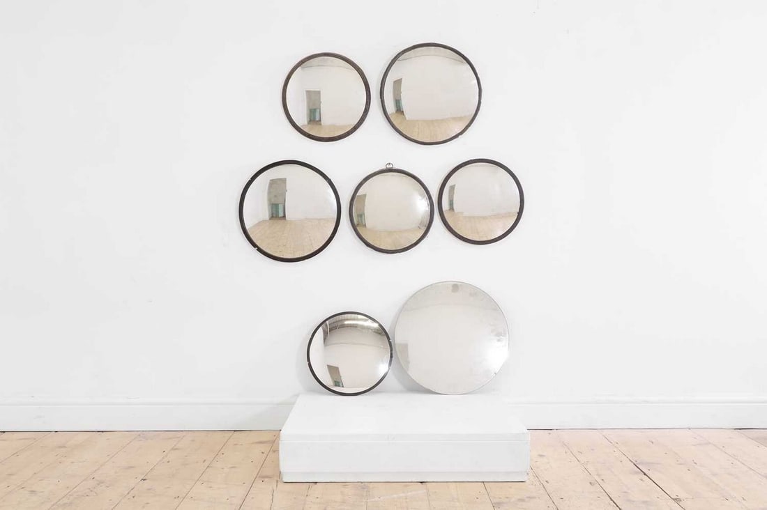 Seven various convex mirrors,