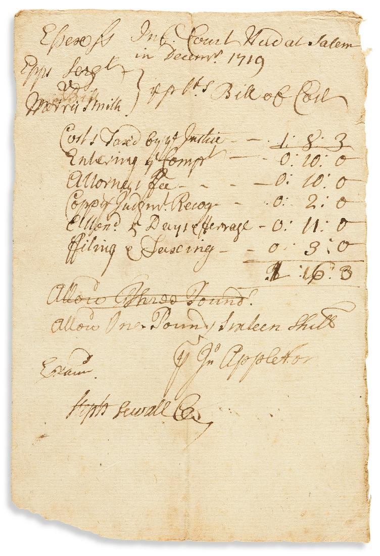 Late 18th Century Pennsylvania Colonial Land CaseMar 15, 20261799 Manuscript New York Bail Notice1834 Estate Return Document Recording Sale of Two Enslaved ChildrenMar 15, 20261835 Estate Inventory Document Including Enslaved Woman Listed as PropertyMar 15, 20261801 New York Financial Letter–Early American Commerce Manuscript CorrespondenceMar 15, 20261791 Boston, Massachusetts Official Senate Vote ReturnMar 15, 2026Antebellum Ledger Page Documenting the Sale of SlavesMar 15, 20261763 Colonial Connecticut Constable Expense Account to Transport Female Prisoner to NYMar 15, 2026Colonial Massachusetts Legal Indictment Signed by Foreman Robert Crosman Jr.Mar 15, 2026WALPOLE ROBERT: (1676-1745)Mar 26, 20261773 Colonial Court Indictment The King vs. McGile, Signed by Attorney General Andrew AllenMar 15, 2026DEVONSHIRE DUKE OF: (1720-1764)Mar 26, 20261726 Colonial Connecticut Court Execution Writ – New London County Legal ManuscriptMar 15, 2026Middlesex County Colonial Massachusetts Bay Deed Recorded 1765Mar 15, 20261800 Signed Order, Samuel Jones Jr., New York, Early Republic Judicial DocumentMar 15, 2026AUBREY (JOHN) Miscellanies, upon the following subjects.... printed for A. Bettesworth, and J. B...