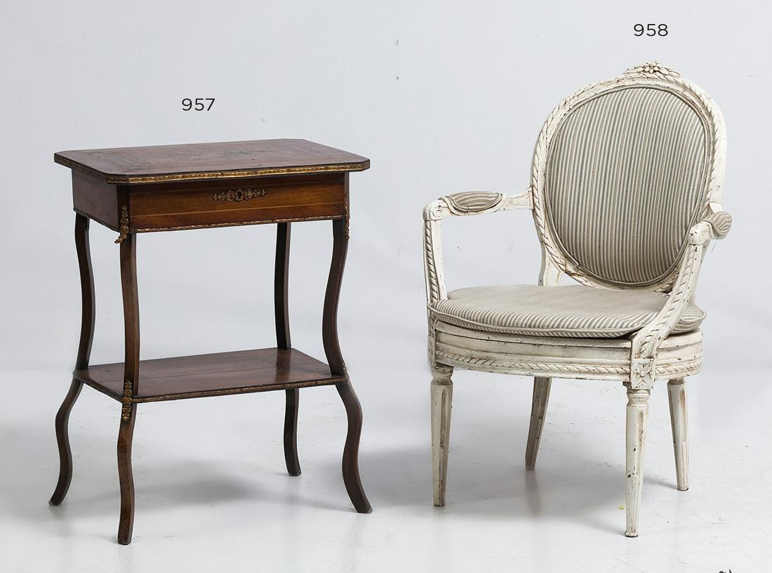 LOUIS XV STYLE FAUTEUIL AND INLAID PEMBROKE TABLE4 days LeftAntique Miniature Burlwood Sewing Cabinet & TableMar 12, 2026LOUIS XV STYLE ARMCHAIRS AND SIDE TABLE4 days LeftEDWARDIAN ARMCHAIR AND LOUIS XV STYLE TABLE4 days LeftAdams Style, Chair and Ottoman, Painted Wood, Fabric, USA, 1930s2 Side Chairs--Marquetry Inlaid and Painted4 days Left2 piece solid mahogany 2 drawer writing desk with chair with world map5 days LeftA Syrian Mother-of-Pearl and Parquetry-Inlaid Games Table and Armchair, Early 20th CenturyMar 15, 2026Two Pieces of Continental Fruitwood Furniture, 19th CenturyMar 15, 2026Pair of Louis XV Style Marble Top Marquetry Petite CommodesMar 12, 2026A PAIR OF GEORGE III MAHOGANY AND MARQUETRY CHAIRS, AFTER A DESIGN BY GEORGE HEPPLEWHITEMar 25, 2026French Louis XV Style Marquetry Inlay Tables 2pcsMar 12, 2026Antique RJ Horner Mahogany Dressing Table with Floral Marquetry C1900Mar 13, 2026A PAIR OF WILLIAM IV AMBOYNA, EBONY, FLORAL MARQUETRY AND PARCEL GILT CIRCULAR OCCASIONAL TABLES1 hr LeftTooled Leather Upholstered Desktop SecretaryMar 12, 2026Mahogany Upholstered Top Ottoman & Needlepoint Seat Side Chair1 day Left