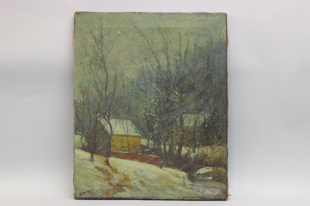 SoldJohn F. Carlson - Snowy WalkJohn Fabian Carlson (Swedish/American, 1875-1947). Snowy Walk. Oil on canvas, signed lower right "John F. Carlson," (25 x 30.25 inches, sight). Frame: H: 30.75 in., W: 35.625 in., D: 1.5 in. LiteraturSee Sold Price