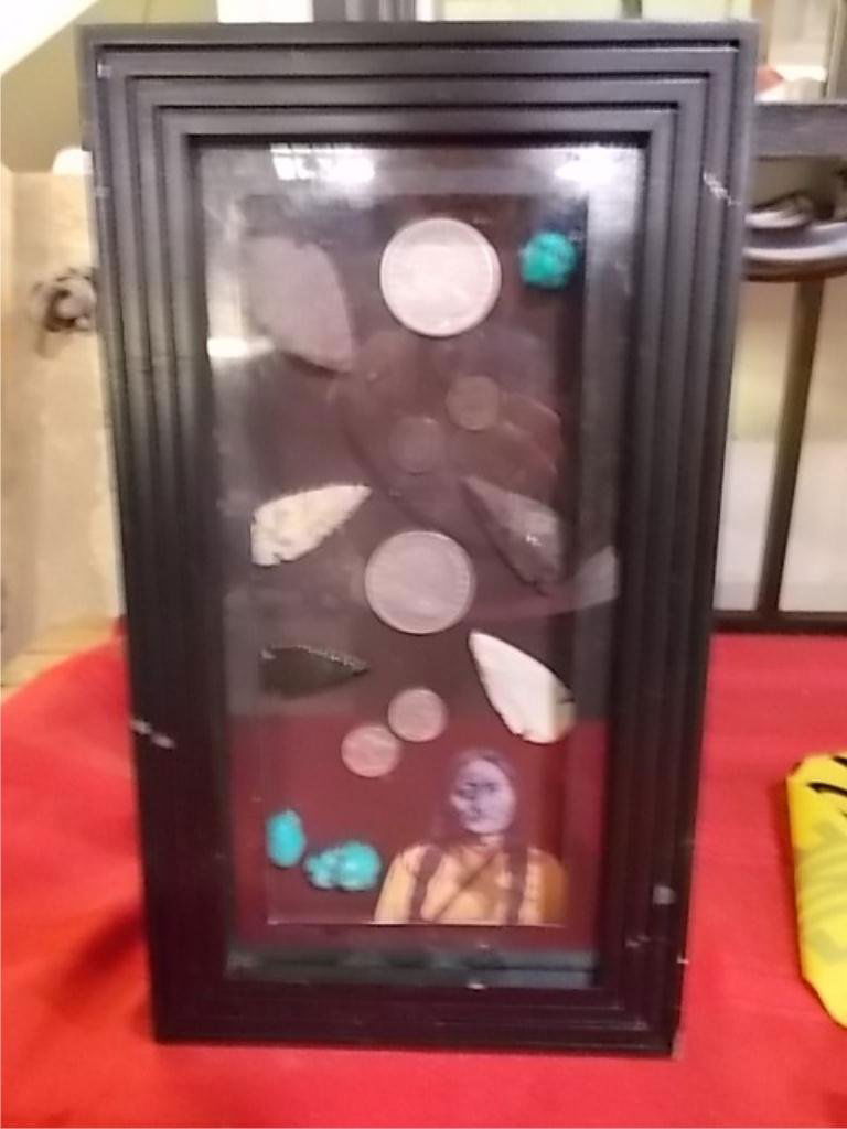 Shadow Box Arrow Heads-Turquoise- Silver Dollars