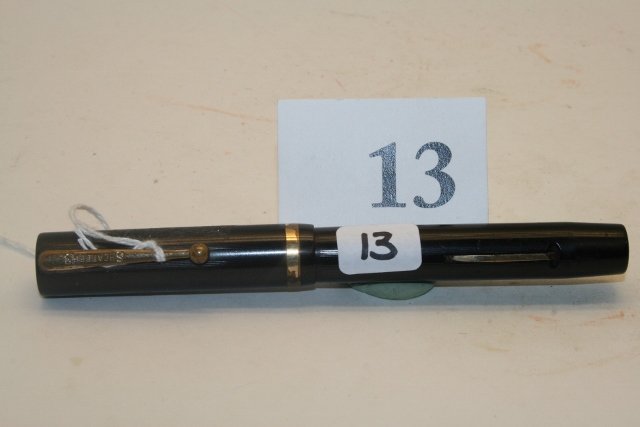 Parker Duofold Streamlined Senior Black Fountain Pen, Flexible NibFeb 28, 2026Sheaffer Flattop Senior Black Fountain Pen, Original StickerFeb 28, 2026Waterman Ideal 0514 SF Gold Filled Overlay Sleeve Filler Fountain PenFeb 28, 2026Sheaffer Balance Tigers Eye SE Fountain Pen, Stub NibFeb 28, 2026Waterman 0512 1/2 PSF Gold Filled Filigree Fountain PenFeb 28, 2026Wahl Signature Oversized Black Chased Dart Pattern Fountain PenFeb 28, 2026Maruzen 125th Anniversary Pilot Made Onoto Streamline Fountain PenFeb 28, 2026Eisenstadt 4 Black Hard Rubber Decorative Gold Cap Band Fountain PenFeb 28, 2026Wahl Eversharp Black & Pearl Gold Seal Fountain PenFeb 28, 2026Montblanc Friedrich Schiller Writer Edition LE Fountain PenFeb 28, 2026Alfred Dunhill 18K Yellow Gold Nib Fountain PenMar 26, 2026Sheaffer Nostalgia WA Sheaffer Commemorative LE Fountain Pen, BoxedFeb 28, 2026Kaweco Elite Black & Pearl Marble Fountain PenFeb 28, 2026Mabie Todd Swan L205/47 Mosaic Leverless Fountain PenFeb 28, 2026Carter Inx Black Pearl Pearltex Fountain Pen, Flexible NibFeb 28, 2026Moore Monarch Oversized Black Hard Rubber Fountain PenFeb 28, 2026