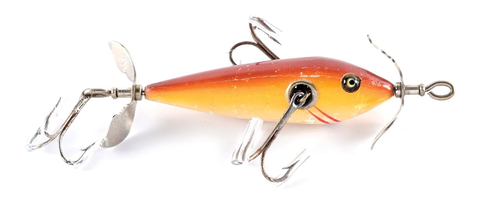 VINTAGE AMERICAN FOLK ART CARVED AND PAINTED WOOD / METAL ICE FISHING DECOYS / LURES, LOT OF THREE5 days LeftSalesman sample Robinson hay mowerMar 27, 2026Arbogast, Heddon & Other Vintage LuresCa. 1930's Plains Indians Horsehair Leather QuirtMar 14, 2026Vintage cast iron fish bottle opener.5 days LeftBrian Clinton (Australia,1940-?) gouache paintingApr 12, 2026#206 CCB Co. Baby WigglerMar 27, 2026#1503 CCB Co. Baby Injured MinnowMar 27, 2026(3) CCB Co. Pikie MinnowsMar 27, 2026(3) CCB Co. luresMar 27, 2026JAWS (1975) - Quint's (Robert Shaw) Screen- and Photo-Matched Fenwick Deluxe 670 130 lb. Fishing RodMar 25, 2026Special order CCB Co. BeetleMar 27, 2026BASS PLUG, B. WHITEMar 15, 2026Group of 5 Vintage fishing Lures6 days Left(2) Shakespear luresMar 27, 2026Creek Chub Jointed Pikie Lure with Glass EyesMar 12, 2026