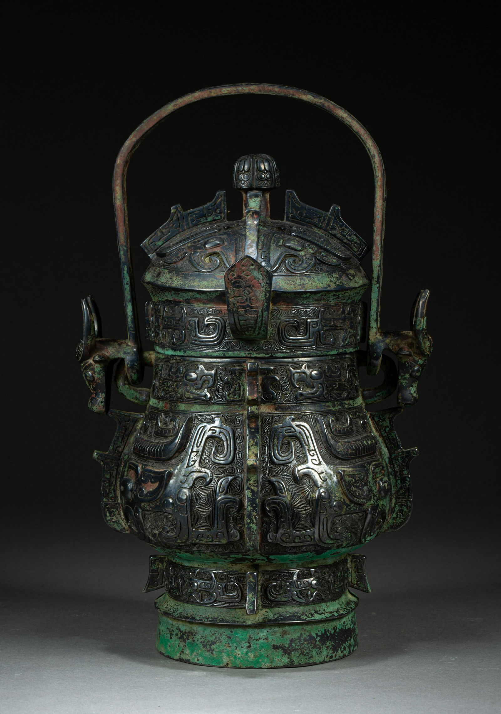Shang period bronze handled wine container