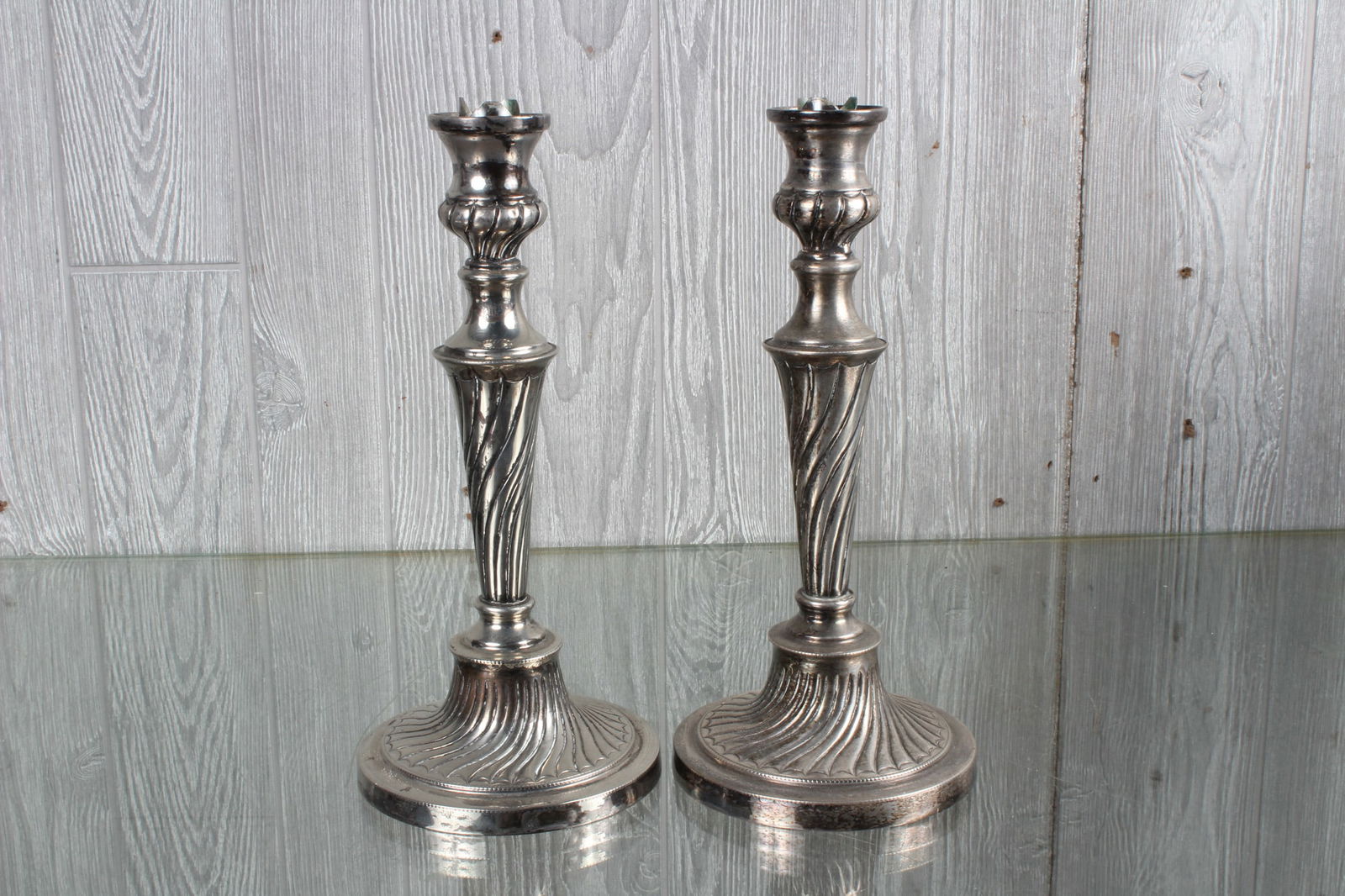 Sheffield Plate Candlesticks, Fish Hallmarks