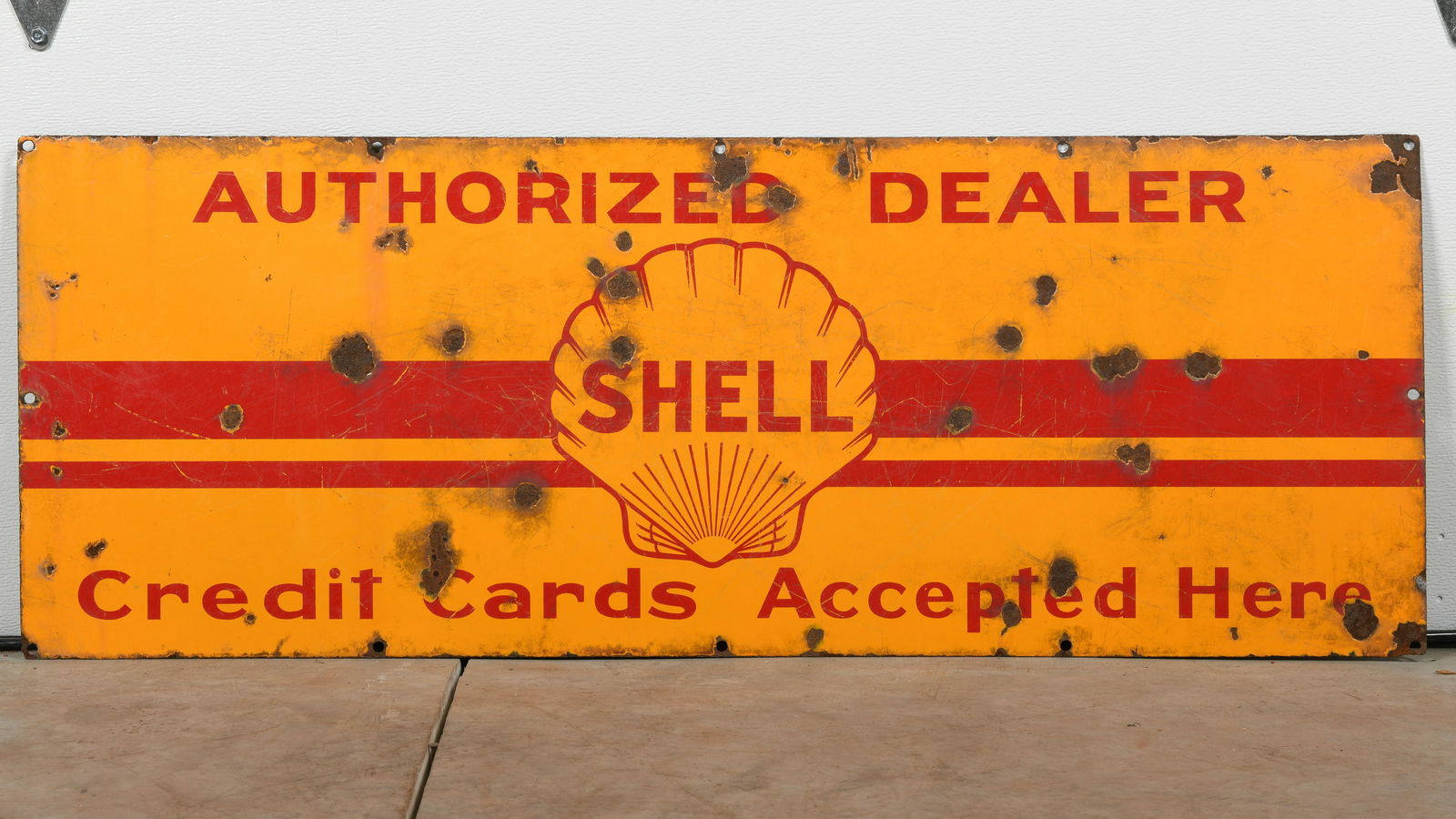 (4) Shell Gasoline & Oil SSP Signs & Attendants HatMar 14, 2026Shell Gasoline Service Station 5' Clamshell SignMar 07, 2026Shell Gasoline Service Station 5' Clamshell SignMar 07, 202625" Shell Motor Oil Clamshell DSP Advertising SignMar 21, 2026116" Shell SSP Gas Station Advertising SignMar 21, 202648" Shell Double Sided Porcelain Advertising SignMar 21, 2026Shell Gas Pump Contemporary Sign3 days LeftShell Oil Contemporary Sign3 days LeftShell Double Sided Porcelain Dealer SignMar 21, 2026Shell X-100 Motor Oil DSP Advertising Flange SignMar 21, 202625" Shell Gasoline Clamshell DSP Advertising SignMar 21, 2026Shell Service Station Light Up Dealership SignMar 20, 2026Shell Aviation Gasoline 30" "Roxana" SignMar 07, 2026Early "Shell" Gasoline SignMar 07, 2026Shell Service Station Light Up SignMar 20, 2026Shell Motor Oil Double Sided Tin Die Cut Flange SignMar 21, 2026