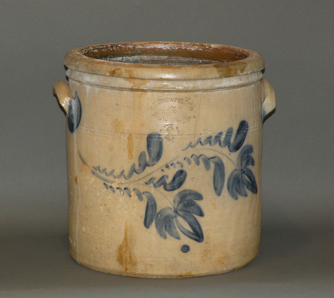 Shenfelder blue decorated stoneware crock