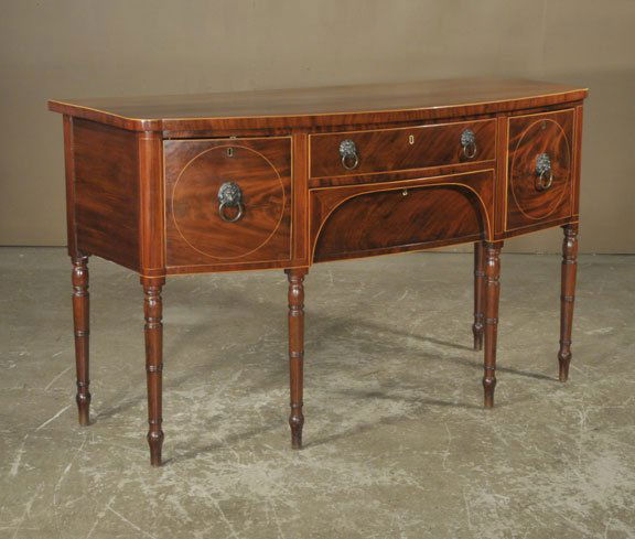 Sheraton mahogany bow front sideboard with string