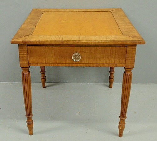 Sheraton style maple end table with bird's-eye map