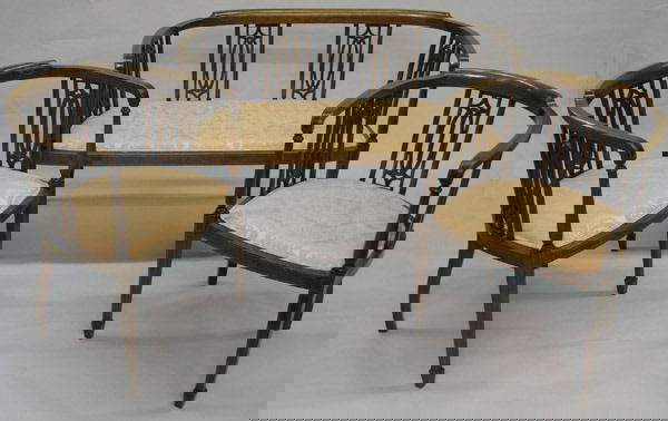 SoldA Louis XVI Style Parlor Suite.A Louis XVI Style Parlor Suite. Comprising a settee (37" x 46" x 18") and a pair of fauteuils (back height: 37"). All with a carved ribbon decorationSee Sold Price