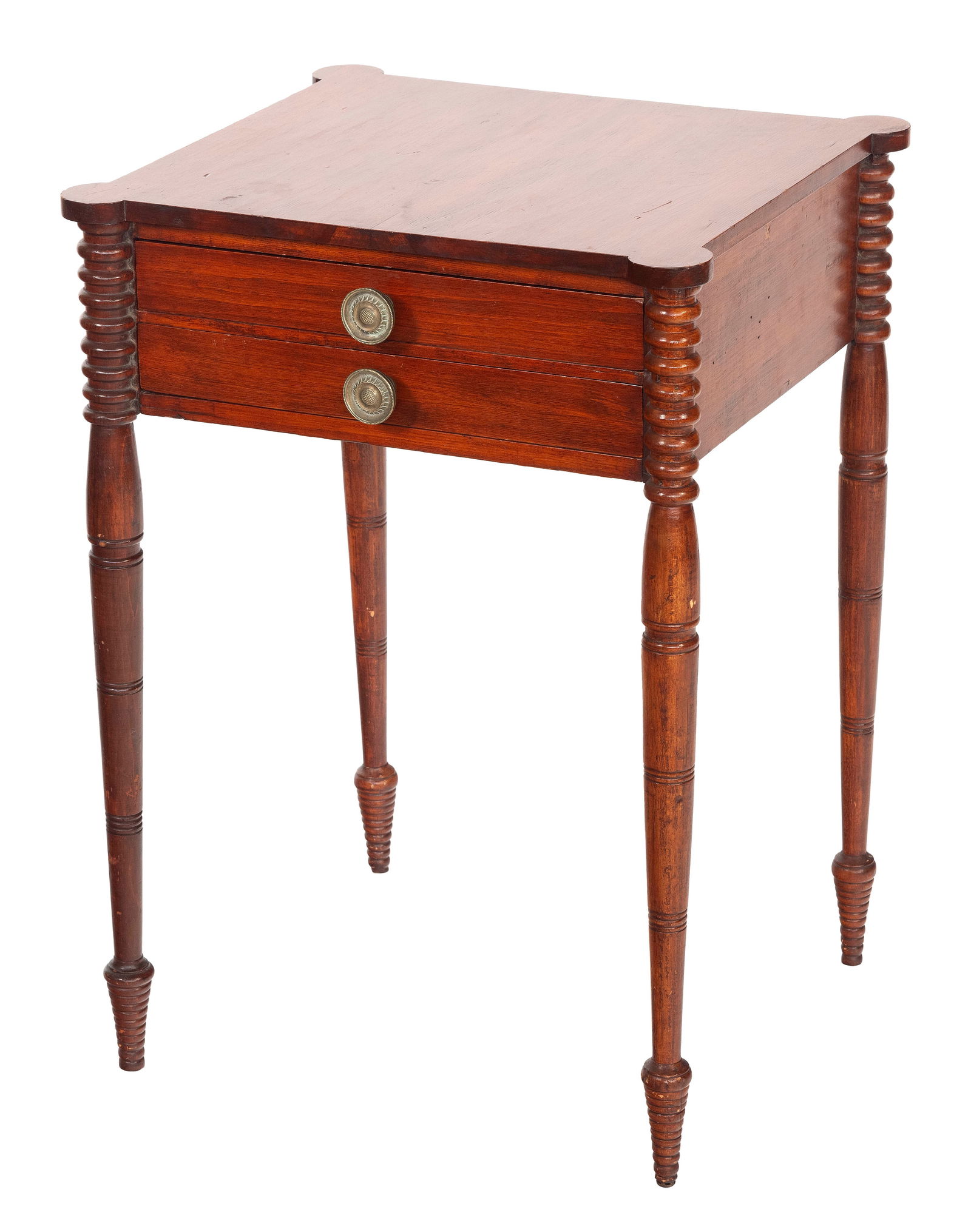 SHERATON TWO-DRAWER STAND Circa 1820 Height 29”. Width 21”. Depth 18.5”.