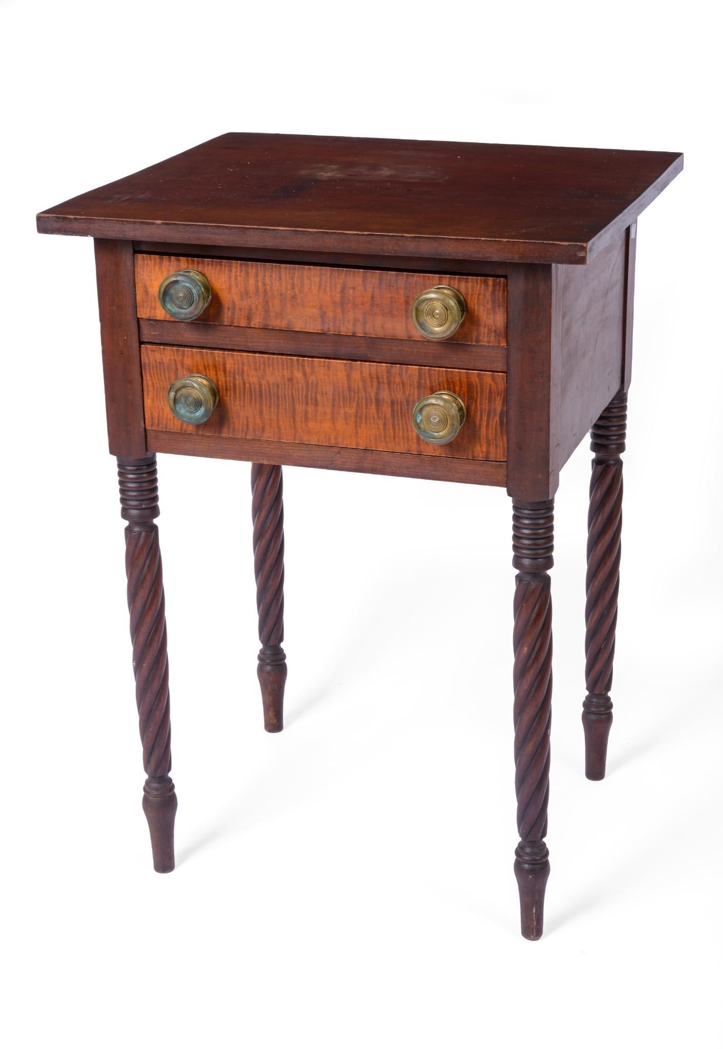 Sheraton Two Drawer Stand With Tiger Maple Drawers.