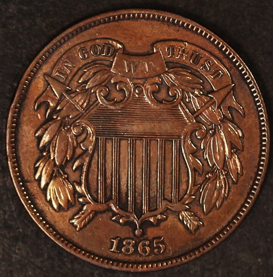 1867 Two Cent Piece Doubled Die Obverse Key Date Copper Coin