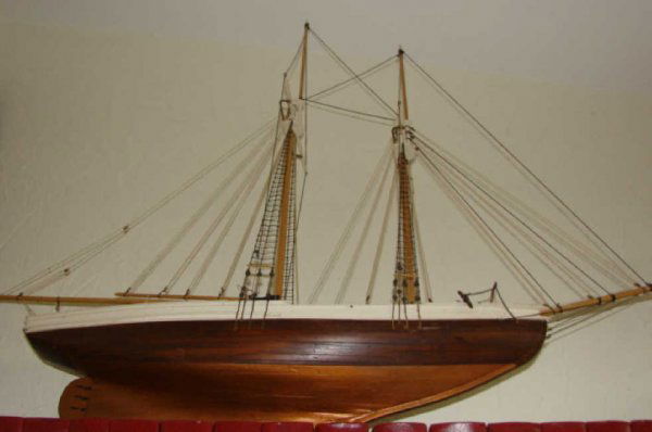 SoldSHIP MODEL, CUTTER RIGGED "BLUENOSE", L 30"SHIP MODEL, CUTTER RIGGED "BLUENOSE", L 30" In glass case.See Sold Price