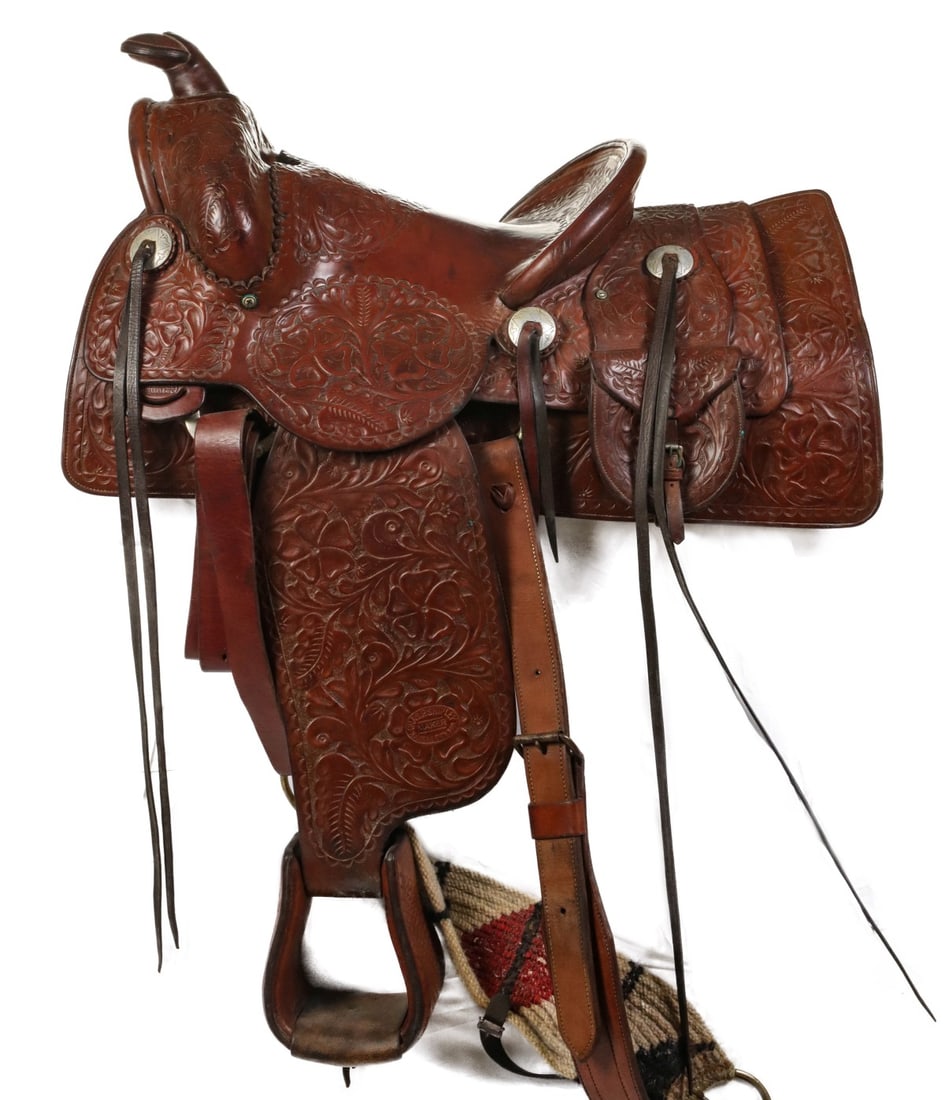 Ca. 1900- Clark Saddlery Shotgun Chaps ex-WSSRMar 14, 2026George Lawrence Co. Saddle Portland, OR c.1880'sMar 14, 2026Vintage Custom Equestrian Horse Saddle Swivel StoolUnique 1950’s Child's Leather Saddle Chair9 hrs Left"C.P Shipley, Kansas City, Mo." marked highly tooled Saddle with square skirt, 14" seat, 3 1/2"Mar 28, 2026Well-Made Western Roping Saddle with Deep Seat and Leather-Wrapped Horn1 day Left"F.A. Meanea, Cheyenne, W.T." (Wyoming Territory), marked, early square skirt Saddle with doubleMar 28, 2026Vintage Porter Saddle5 days LeftUNITED STATES MILITARY MCCLELLAN SADDLE340 Lots AwayMother Hubbard style vintage Saddle, 12" seat, 2 1/2" cantle, early square skirt with raised pewterMar 28, 2026J.J. CROFT CUSTOM WESTERN SADDLEMar 18, 2026"R.T. Frazier, Pueblo, Colo." marked Saddle, maker marked at least 3 times, highly tooled and veryMar 28, 2026PORTER SADDLE CO., PHOENIX SADDLEMar 18, 202619th C Tooled Leather Western Saddle & AccessoriesMar 22, 2026BASKET STAMPED SADDLE BY LICHTENBERGER FERGUSON CO.Mar 18, 2026A DECORATIVE STUDDED R. T. FRAZIER SADDLEMar 18, 2026