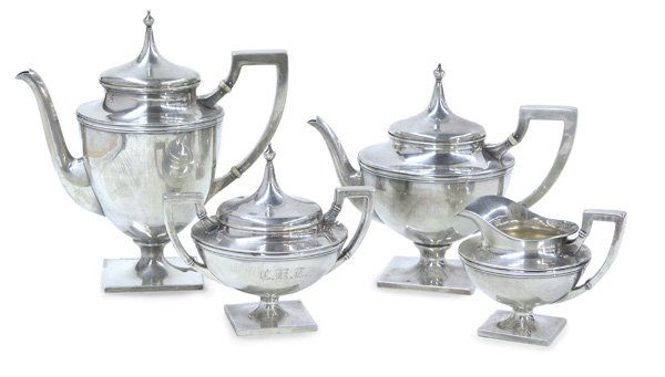 Lot of Silverplated Items7 days LeftLot Silver Plate Items7 days LeftSTAFFORDSHIRE TRANSFER-PRINTED CERAMIC DRINKING ARTICLES, LOT OF FOURMar 05, 2026PRESSED LACY CALIFORNIA COVERED SUGARS AND CREAMER, LOT THREEMar 05, 2026STAFFORDSHIRE BLUE TRANSFER-PRINTED CERAMIC COFFEE POTS, LOT OF FIVEMar 05, 2026ENGLISH SILVER LUSTRE CERAMIC TEA AND COFFEE ARTICLES, LOT OF SIX7 days LeftSterling Silver Estate TablewaresMar 05, 2026A FOUR-PIECE SILVER 'BAMBOO' TEA AND COFFEE SERVICE, MARK OF ZEE WO, SHANGHAI, CIRCA 1870-1925Mar 11, 2026Sterling Coffee and Tea Set by Reed & BartonMar 10, 2026Gorham Sterling 5 Pc. Coffee and Tea SetMar 10, 20266 Piece Sterling Silver Tea and Coffee Set19 hrs LeftGorham Plymouth Sterling Silver Coffee & Tea SetMar 19, 2026Bailey, Banks & Biddle Queen Anne Sterling Tea Set2 days LeftFrank Smith Sterling "Georgian Garland" Coffee Set21 hrs LeftFour Piece Chinese Export Silver Tea and Coffee Set, Marked 'C.J'4 days LeftSix-Piece Gorham Sterling Tea & Coffee Service21 hrs Left