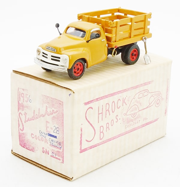 SoldSHROCK BROS #13 1936 STUDEBAKER COE COAL DUMP TRUCKdie cast, red & black, trim in bag, orig box, C9.See Sold Price