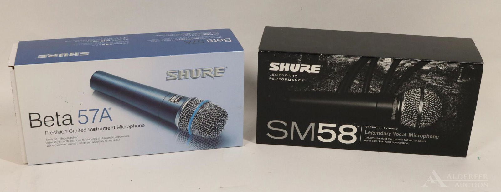 SoldSET OF 4 SHURE MICROPHONESSHURE MICROPHONE LOT WITH CLAMPS AND POUCH | SHURE MICROPHONE LOT INCLUDES ONE SHURE SM58 DYNAMIC VOCAL MICROPHONE WITH POUCH AND THREE SHURE SM57 INSTRUMENT MICROPHONES WITH ATTACHED CLAMP-ON MOUNTSSee Sold Price