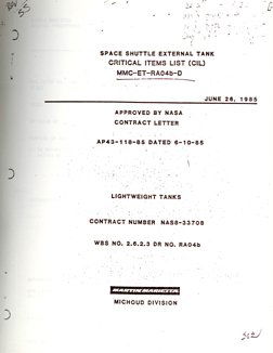 Shuttle, Critical Items Document