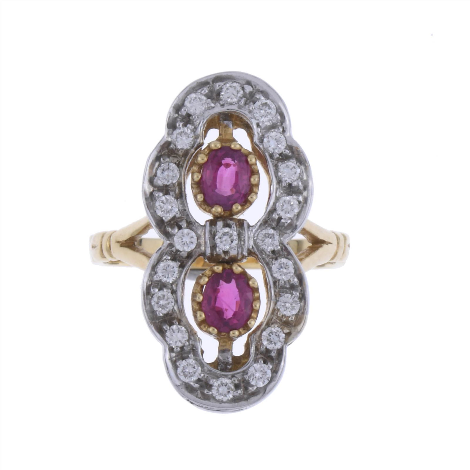 SHUTTLE RING WITH DIAMONDS AND RUBIES.