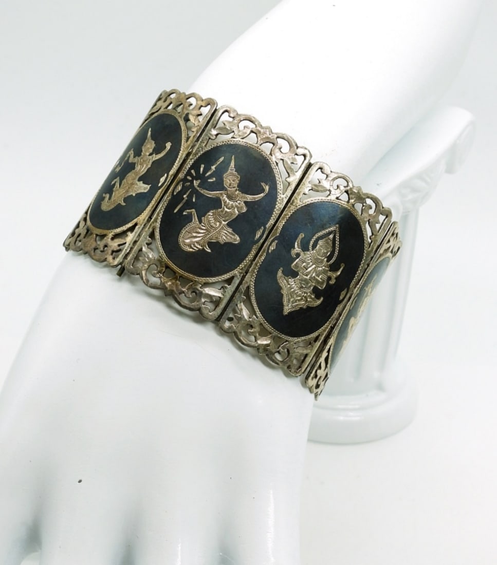 Heavy Vintage Estate Sterling Silver Siam Bracelet