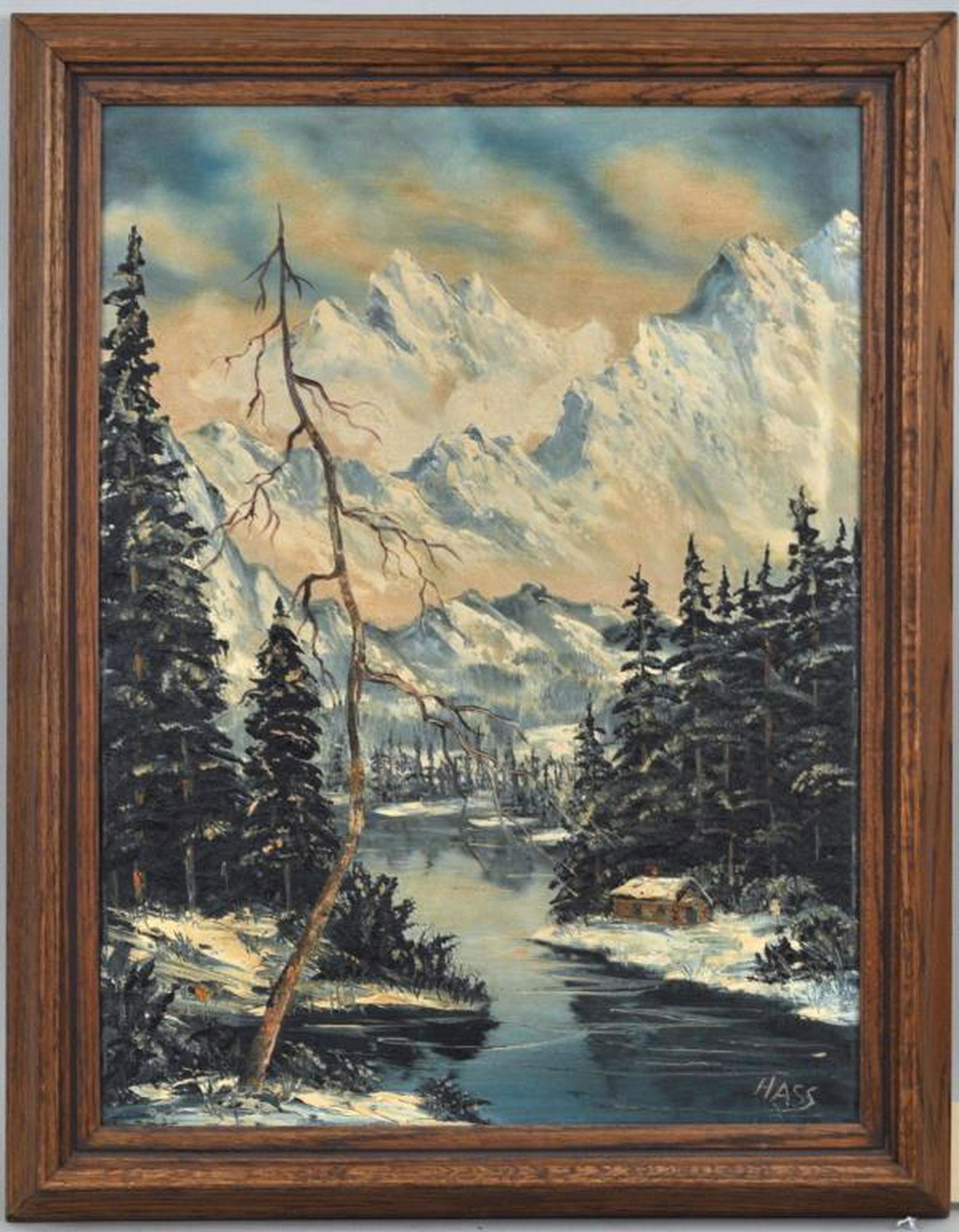 Siegfried Hass, "Winter Mountain Scene" O/C