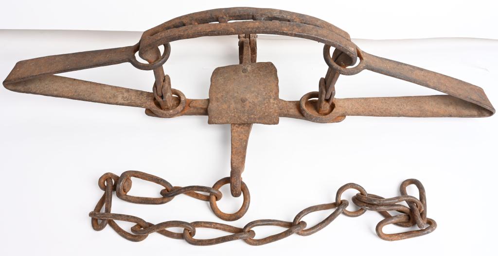 ONEIDA AND BLAKE & LAMB CAST-IRON ANIMAL TRAPS, LOT OF THREE6 days LeftLot of 6 Vintage Small Game Traps, Newhouse, Oneida & More Blake Lamb #3 and More1 day LeftAntique Chesapeake Bay crab boat pulley.7 days Left17th - 18th C. Scolds Bridle Head Mask Torture DeviceMar 14, 2026Early American 18th-19thC Antique Leg and Handcuffs with Original Lock1 day LeftBear trap with chainMar 27, 2026S. Newhouse Oneida Community #14 Double Long Spring TrapMar 21, 2026Newhouse Animal Trap Company #114 Double Long Spring TrapMar 21, 202617th/18th c. forged iron lock w/ original key & works3 days LeftCast Metal Rim Lock Mechanism2 days LeftEarly Unmarked Handcuffs w/ Key2 days LeftNo.6 Grizzly bear trap with chainMar 27, 2026Chicago Burlington and Quincy Railroad Brass Heart Shaped Lock w/ Tall ShackleMar 06, 2026Antique Iron Shackles, Leg Irons, or Handcuffs with Key1 day LeftAntique 1800’s Wooden Bow Saw “Bucksaw?? / “Framesaw1 day LeftUnique 16th C. Fire Bolt CROSSBOW Forged Iron & Chain SuspensionMar 28, 2026