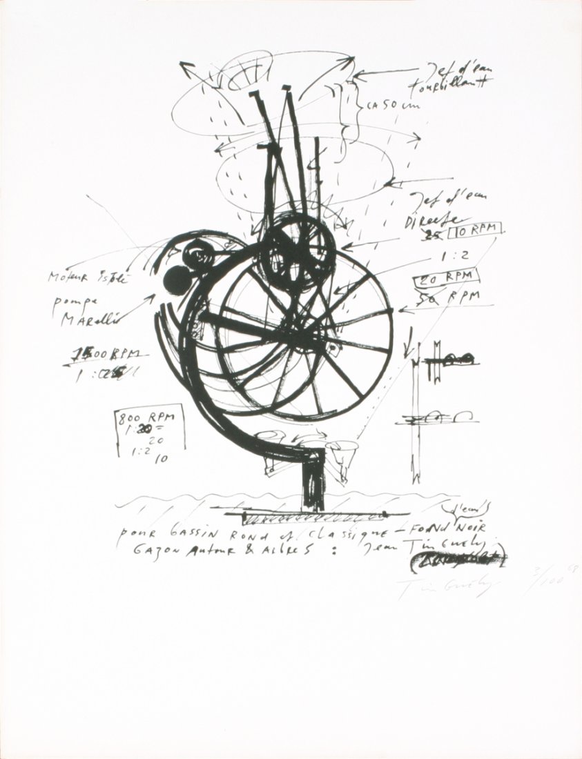 Signed 1968 Tinguely Untitled Lithograph
